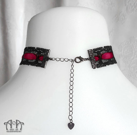 Custom Size Satin Ribbon & Black Lace Choker Necklace