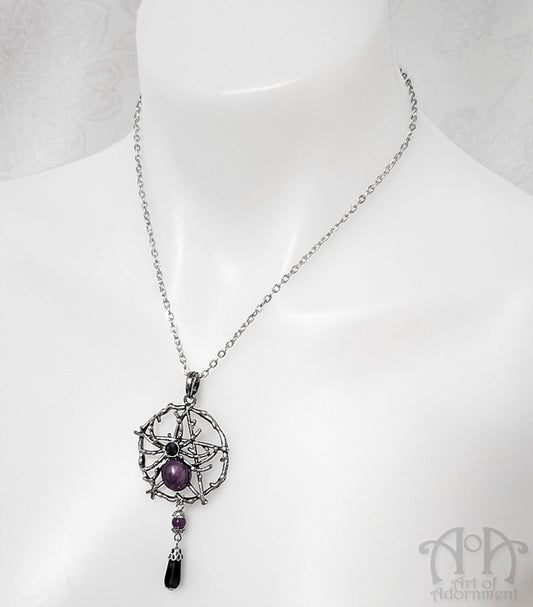 Mystic Spider Amethyst Pentagram Pendant Necklace