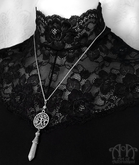 Cosmic Tree Milky Quartz Rock Crystal Pendant Necklace