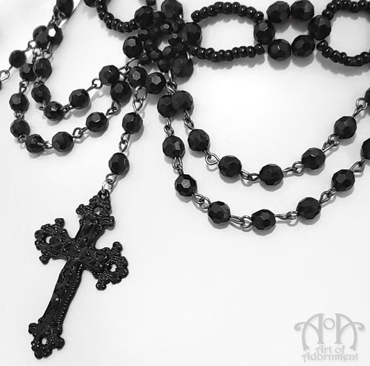 Gothic Cross Pendant Black Beaded Choker Necklace