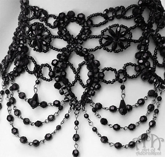 Gothic Empress Black Beaded Choker Necklace & Earrings Set
