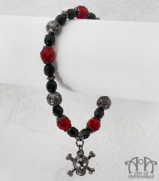 ÜberGoth Red & Black Skull Charm Beaded Stretch Bracelet