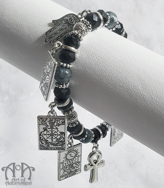 Black Crystal & Labradorite Tarot Card Charm Stretch Bracelet
