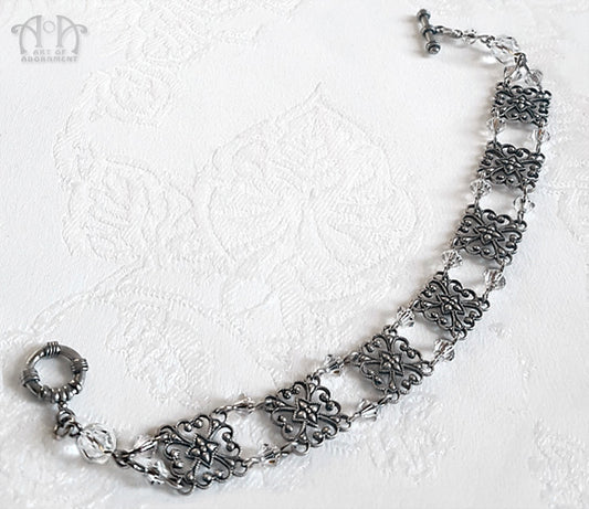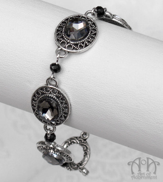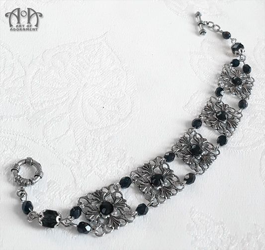 Nocturne Grey & Black Crystal Beaded Filigree Bracelet