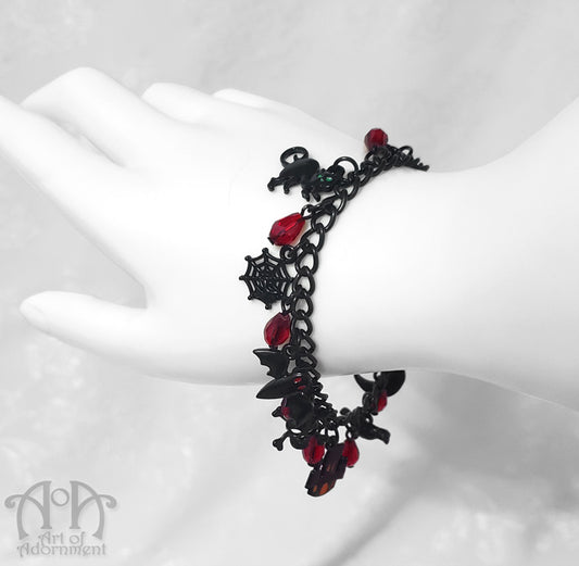 ÜberGoth Black Vampire Bat Halloween Charm Bracelet