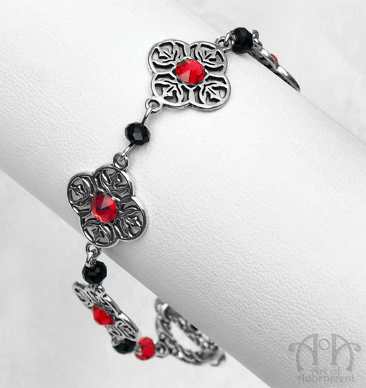 Sanguinari Beaded Red & Black Rhinestone Filigree Bracelet