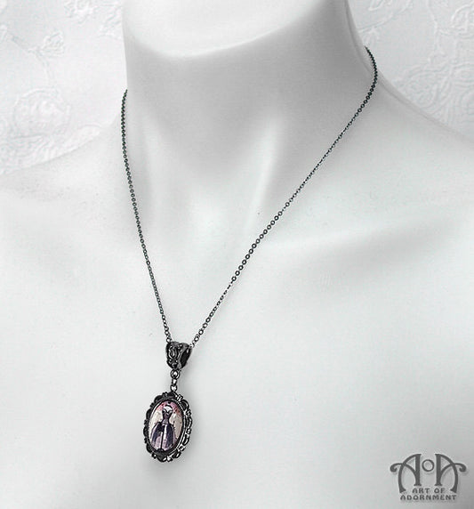 Gothic Gunmetal Glass Corset Cameo Pendant Necklace