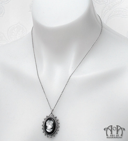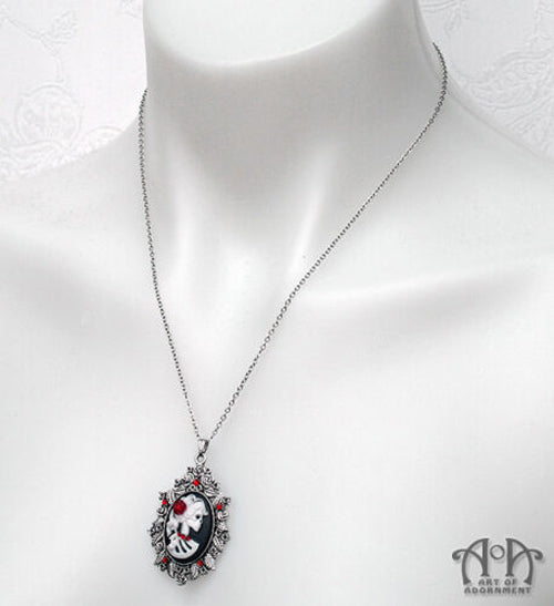 Sanguinari Gothic Lady Skull Cameo Pendant Necklace