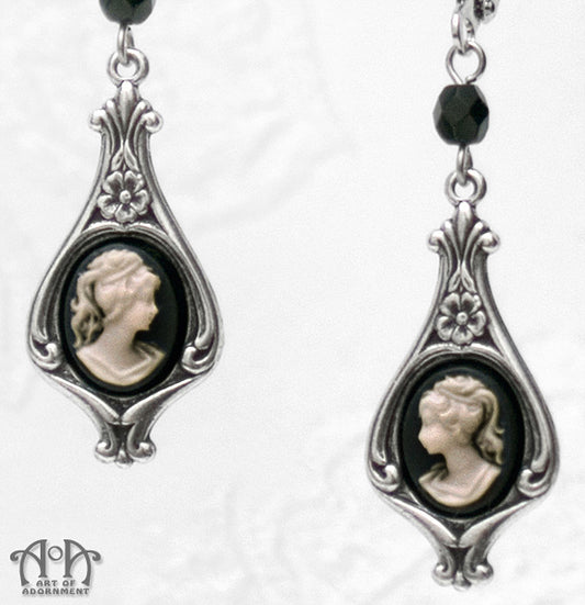 Luminosa Black & White Art Nouveau Cameo Drop Earrings