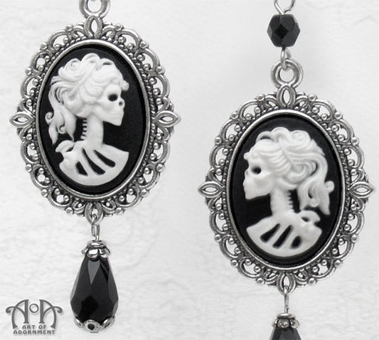 Luminosa Gothic Lady Skull Cameo Filigree Drop Earrings