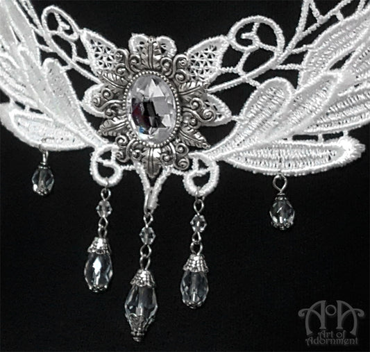 Snow Queen Victorian White Lace Crystal Choker Necklace