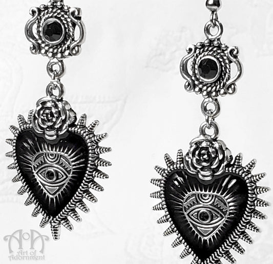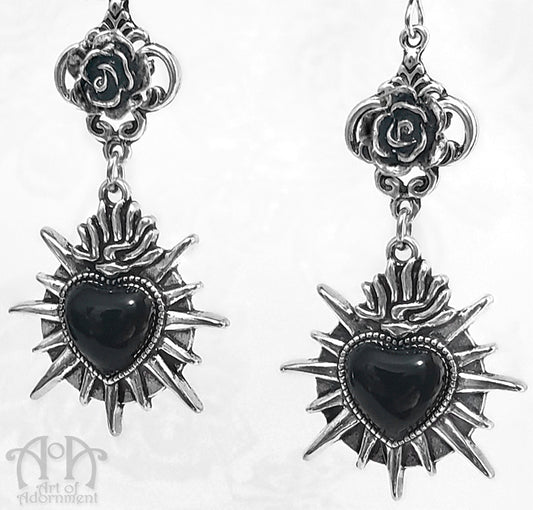 Rose & Thorn Spiked Dark Sacred Heart Earrings