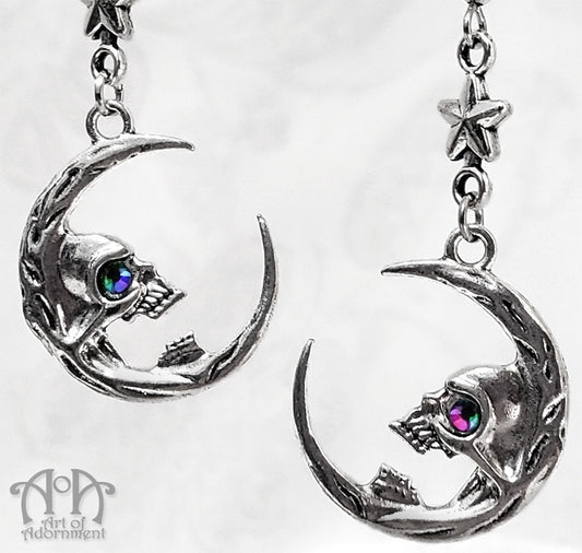 Gothic Skull-In-The-Moon Rhinestone Earrings