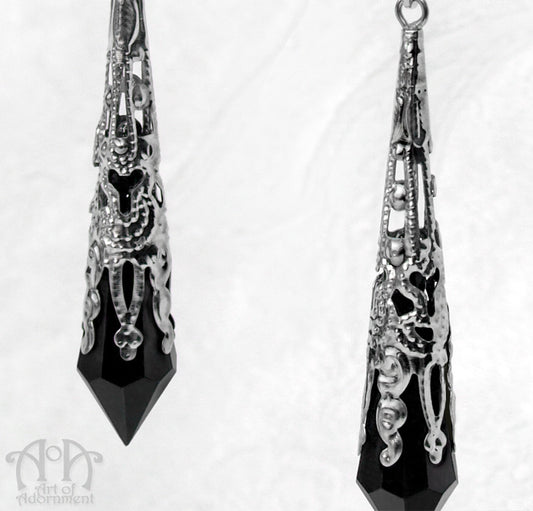 Nocturne Gothic Filigree Black Pointed Drop Earrings