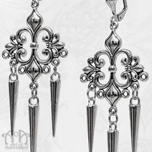 Argenta Gothic Spiked Fleur-De-Lis Chandelier Earrings