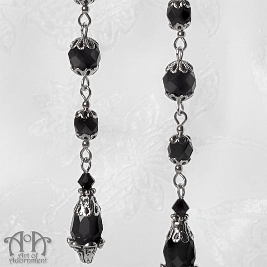 Victorian Gunmetal Black Beaded Teardrop Earrings