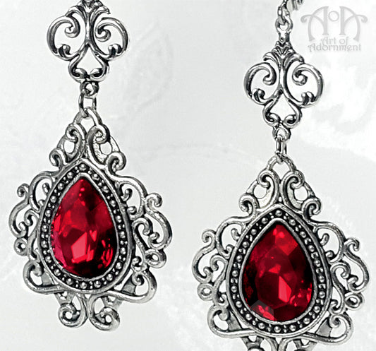 Sanguinari Red Teardrop Renaissance Filigree Earrings
