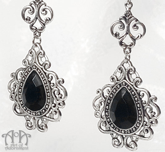 Nocturne Black Teardrop Renaissance Filigree Earrings
