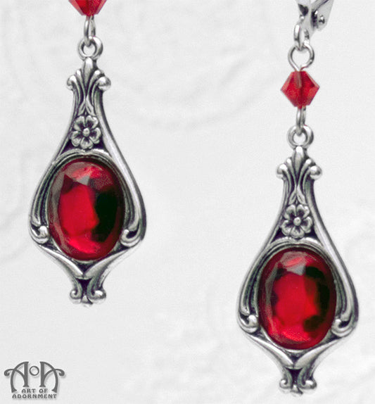 Sanguinari Red Crystal Victorian Art Nouveau Earrings