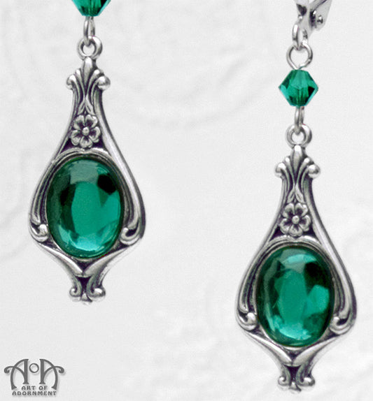 Sylvannia Green Crystal Victorian Art Nouveau Earrings