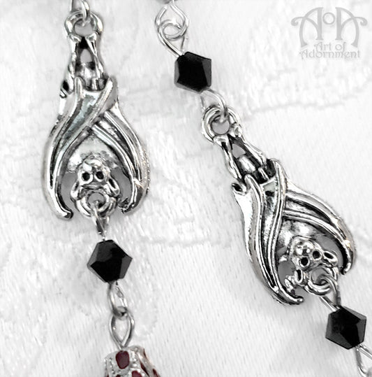 Sanguinari Sleepy Bat Black & Red Crystal Beaded Earrings