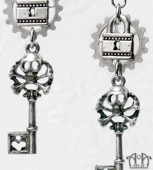 Argenta Gothic Skull Lock & Skeleton Key Earrings