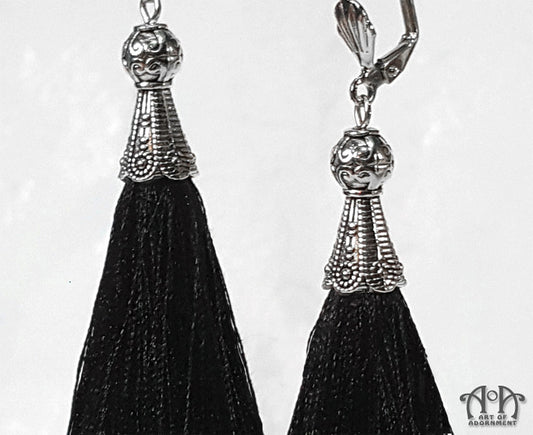 Nocturne Black Tassel Fringe 1920's Flapper Earrings