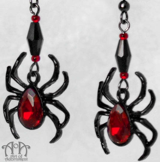 ÜberGoth Black Widow Red Crystal Spider Earrings
