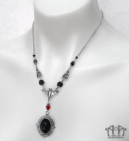 Gothic Triple Bat Black Crystal Pendant Necklace