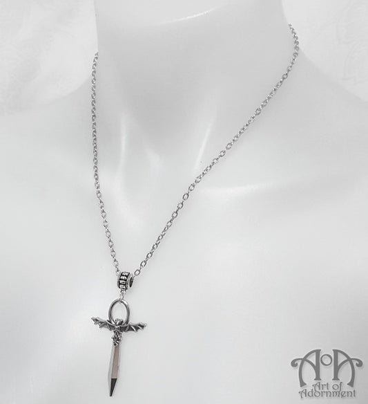 ÜberGoth Black Bat Winged Ankh Sword Pendant Necklace