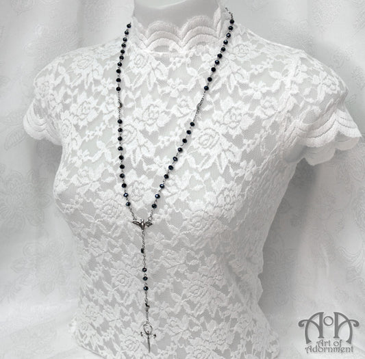 Requiem For The Vampire Black Crystal Rosary Necklace