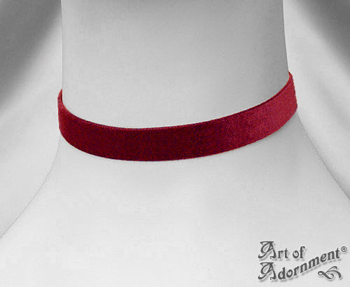 Made to order, ready to ship within 2 business days. A romantic band of soft 5/8" (16mm) wide velvet available in rich crimson red and deep forest green (black available here). Ideal for almost any look, whether Gothic, Victorian, Steampunk or Renaissance! These are the exact same colours as used on our jewelled chokers. Adjustable at the back with silver plated lobster claw clasp, connectors and chain. Lead-free and nickel-free.