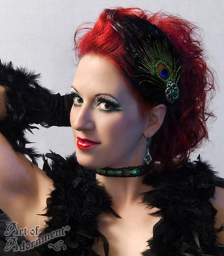 Made to order, ready to ship within 2 business days. A romantic band of 3/4" (2cm) wide flat black insertion lace with coloured satin ribbon woven through it. Adjustable at the back with glistening grey-black gunmetal plated lobster claw clasp, connectors and chain (silver plated available upon request, use "Order Notes" box in checkout).
