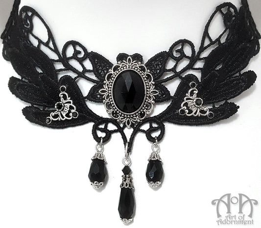 Nocturne Gothic Black Lace Crystal Choker Necklace