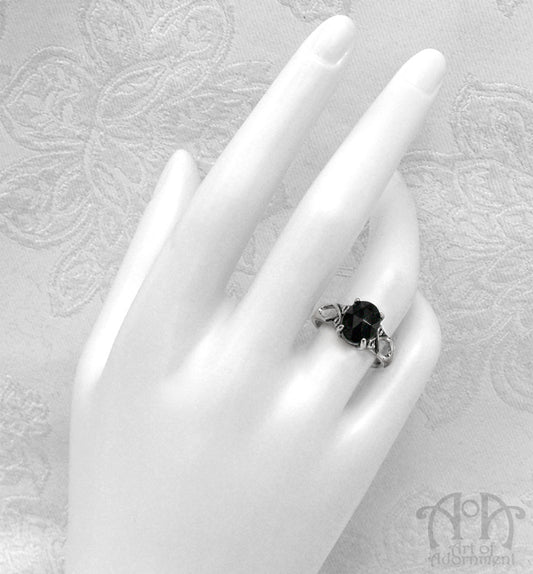 Midnight Garden Gothic Crystal Adjustable Filigree Ring