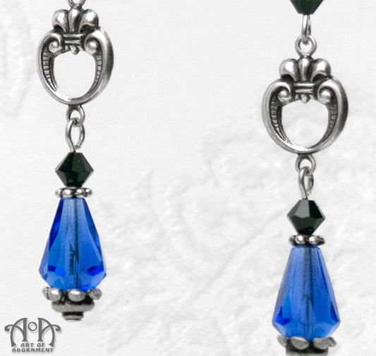 Celestia Blue & Black Fleur-De-Lis Teardrop Earrings
