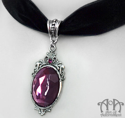 Vervaina Purple Crystal Black Velvet Pendant Choker Necklace