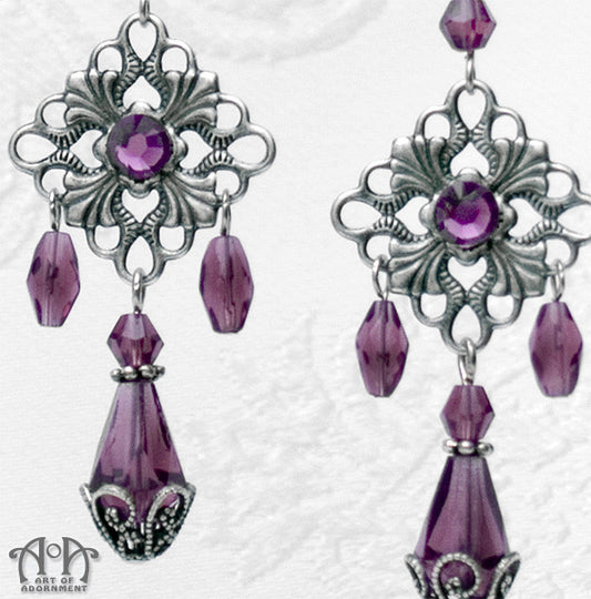 Vervaina Baroque Purple Rhinestone Chandelier Earrings