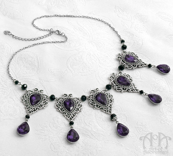 Vervaina Dark Purple & Black Teardrop Renaissance Filigree Necklace